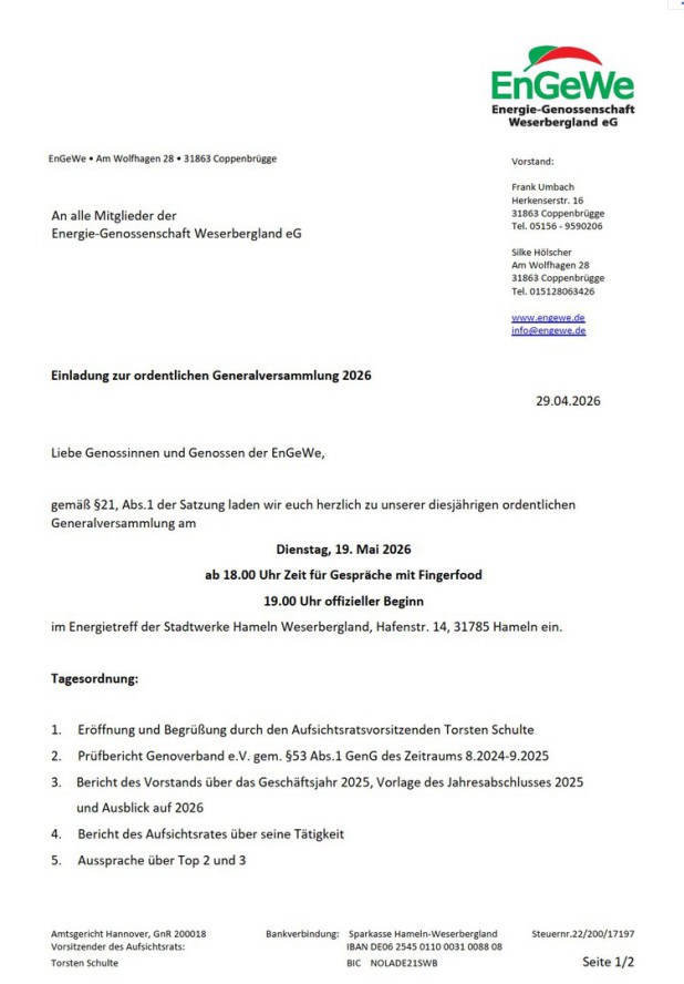 Am 19.06.2024 besuchte der Vorstand der EnGeWe den Mitbegründer und langjährigen Vorstand Reinhard Pigors. Weil dieser aus gesundheitlichen Gründen nicht an der Generalversammlung teilnehmen konnte, wurde ihm das Abschiedsgeschenk jetzt zu Hause überreicht. Bei einem Glas Wein tauschten sich die drei „Kollegen“ über die Anfänge der EnGeWe und über die Entwicklungen in der letzten Zeit aus. Silke Hölscher und Frank Umbach bedankten sich bei Reinhard Pigors auch für das Vertrauen, das er in sie setzt. Er freute sich über den Besuch und versicherte, dass er trotz seines Rückzugs aus dem Tagesgeschäft der EnGeWe auch weiterhin mit Rat und Tat zur Seite stehen will.